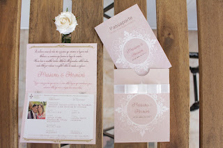 Existem bastantes semelhanças com um passaporte original mas este tem particularidades irrepetíveis por fazerem parte de um casal único e apaixonado: carimbos com designação e imagem dos sítios por onde passaram, textos que não deixam escapar a forma apaixonada de viverem o amor, a apresentação dos noivos com o local, data, hora…, um mapa com referências da Quinta e da Igreja e por fim um texto muito interessante a cerca da forma como deve ser tratado “este passaporte”, propriedade de Adriana e Miguel. Uma capa com um papel de textura diferente, um cordel simples a envolvê-lo e a terminar com um laço, onde segura um cartão com o nome da pessoa a presentear.